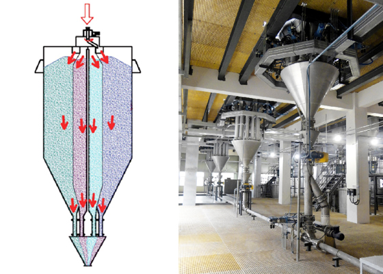 Special design of blending silo san be provided for instance venting,nitrogen sealing and explosion protection. Lower energy consumption at the same mixing condition.