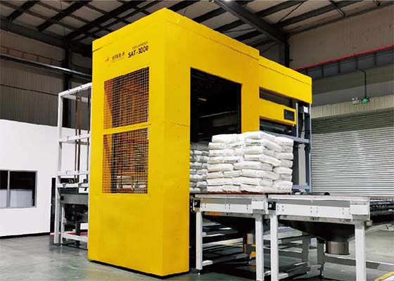 全自動高速拆包機(jī)主要可實現(xiàn)袋裝原料整垛拆包,卡板自動升降和收集,廢袋自動收集。相比傳統(tǒng)拆包機(jī),效率提高了3倍。